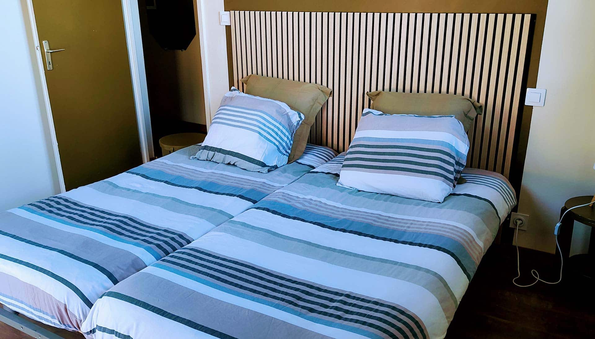 « Le gîte exotique vous fera voyager avec ses teintes rafraichissantes et ensoleillées d’outremer et de jaune, associées au bois naturel. Un espace confortable et optimisé, où il fait bon vivre, tout naturellement ! »